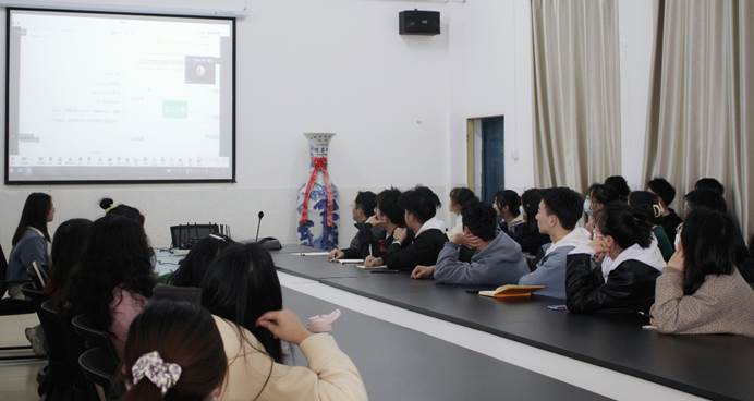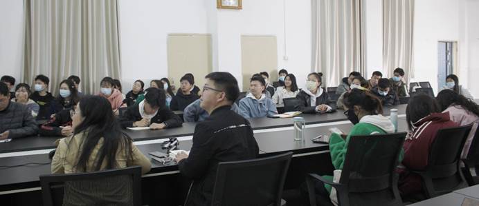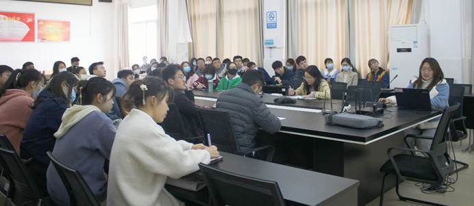 会议伊始,刘聪向同学们讲解了考前准备、复试内容以及复试流程等相关信息,让同学们对考研复试有了一个更清楚明确的认识。他认为在备试过程中,要提前联系好考研学校的导师,对于翻译类题,要多加积累时事政治和专业文献中的专业词汇,在把握好语速的同时,也要控制好语言的流畅度。在蒋彩云分享的PPT中,提到了复试过程中需要注意的一系列问题,若面试途中遇到无法解答面试老师所提问题时,要承认自己的不足,并表示自己今后会努力学习等细节。在结尾处她以“最难的时候都过来了,不要在第九十九步放弃。”为在场的同学们加油打气。