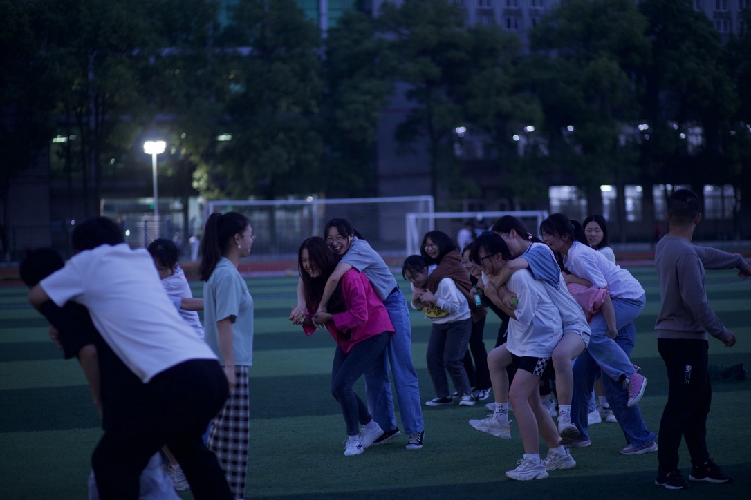 大家起的队名新颖奇特,笑点百出,有“啊对对对队”、“三十八离异带俩娃队”等,游戏过程中有胜利的喜悦,也有被惩罚的滑稽。其中“解纽扣”最令人印象深刻,大家需要手拉手围成一个圈,在闭眼时由教练任意打乱站位,打乱后大家需要在第二状态下重新去拉初状态队友的手,通过解环恢复到初状态,则任务完成。大家共同协作,默契配合,通过钻洞、跳脚等方式来恢复原始状态,两院青马小组迅速融为一个大团体。