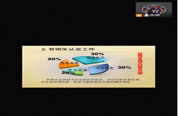 本次资助会议有五个方面主要内容:贫困生认定工作、国家奖学金初选工作、国家励志助学评选工作、各类社会奖助学金工作、长大奖学金及各类学校助学金工作。首先,张彬老师介绍了学校资助工作体系分学校和国家两个层面,并展示了本学期学生资助重点工作。接着他讲解了贫困认定工作的认定的四级机构,校领导学生资助中心、学院、班级。他提到:“班级家庭经济困难学生认定评议小组要以班主任为组长,班长或团支书为副组长,每个寝室推选一人为学生代表,学生代表要具有广泛的代表性且为单数。”随后张彬老师介绍了国家奖学金助学金等各类奖学金的评定规则及评定工作的开展方式等,着重强调了各类奖学金、助学金申请表填写内容的注意事项。