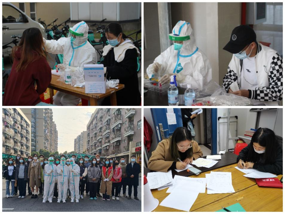 在疫情防控中还有不可或缺的志愿者和医护工作者们,他们早早起床为同学们的核酸检测做准备,认真负责的完成核酸采集任务,维持核酸采集秩序,同时也体贴的提醒同学们佩戴好口罩注意防护,保证了核酸检测的高效完成。