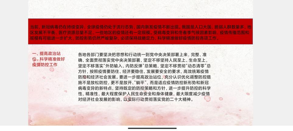 通过刘小菁同学的讲解使同学们了解到,面对突如其来的新冠肺炎疫情,国家坚持人民至上、生命至上,坚持动态清零不动摇的理念,开展了抗击疫情的人民战争、总体战、阻击战,最大限度保护了人民生命安全和身体健康,使疫情防控和经济社会发展取得重大成果。