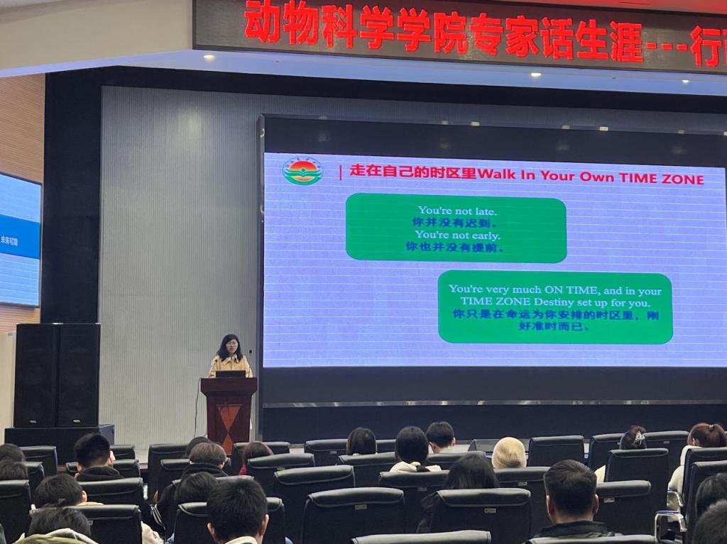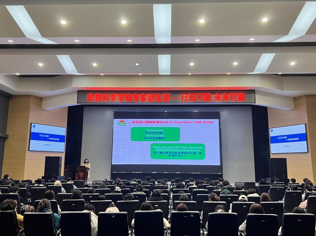 活动伊始,动物科学学院22级辅导员宋宇航老师为同学们介绍了彭墨博士的学习经历以及所取得的成就,随后由彭墨博士上台分享了她的心路历程。
