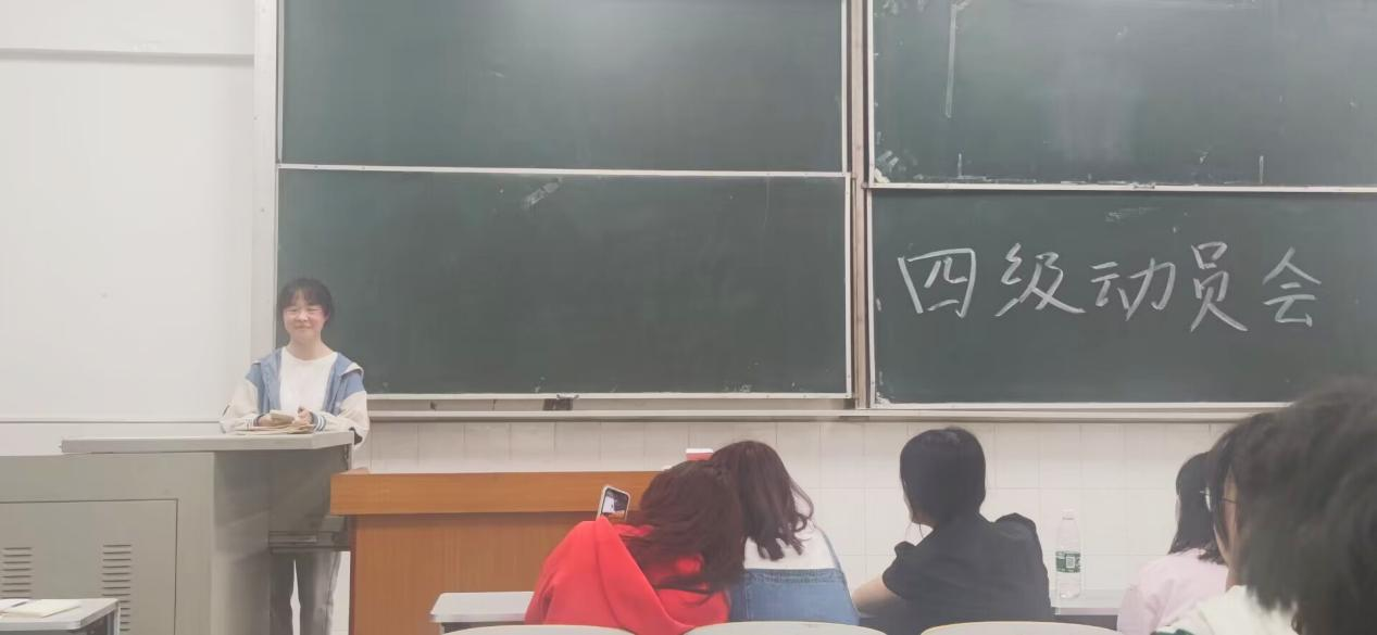 另外,21级学生代表黄玲玲分析了当前同学们的学习状态,针对学习中存在的问题,要求同学们合理规划学习时间,清晰目标定位,制定学习计划,增强学习自律性和自主性,认真复习,积极备考,以一颗平常心对待英语四级考试,力争考出优异的成绩。