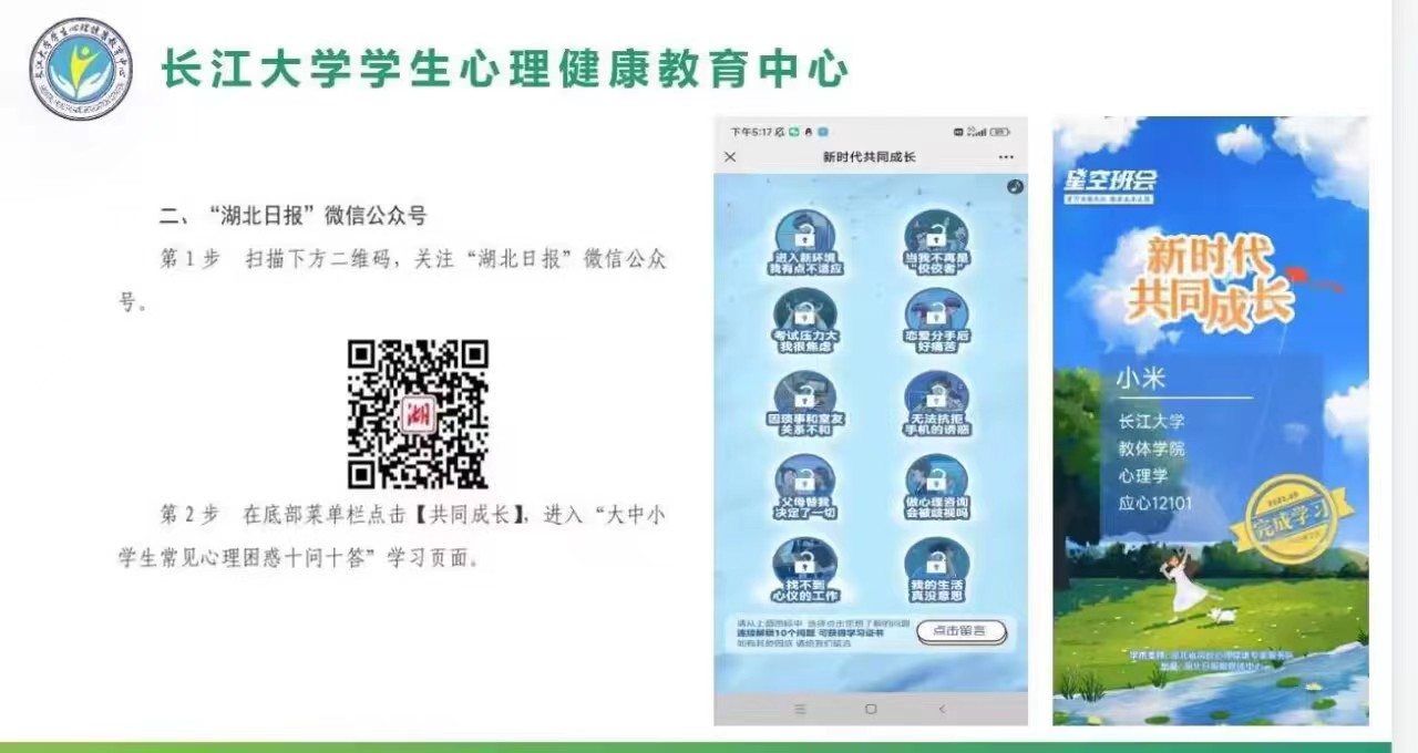 接着,各班心育委员组织大家通过“湖北日报”公众号进行心理微课视频的观看,此次学习采取线上线下一起的方式进行。