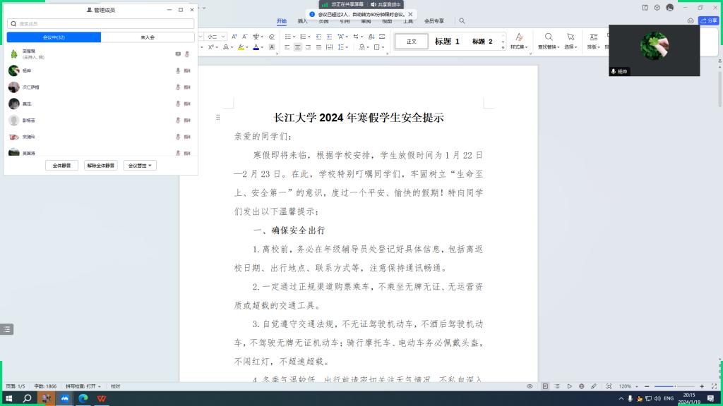 本次会议由各班通过线上腾讯会议形式召开,会议内容为学习习近平总书记的重要回信精神,包括对青年的鼓励和期望、对青年的要求和指导等,并强调寒假前后交通安全专题教育安全相关事项。