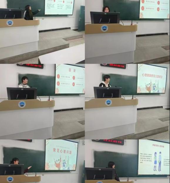 各班心理委员重点介绍了常见的心理问题如:学校适应不良型心理问题、强迫型心理问题、抑郁型心理问题、焦虑型心理问题等,也介绍了心理形成的原因如:本身有注意力缺陷、人际交往障碍等,紧接着心育干部通过案例教会同学们怎么去处理矛盾纠纷,从而引出让同学们提高对健康心理的重视程度。