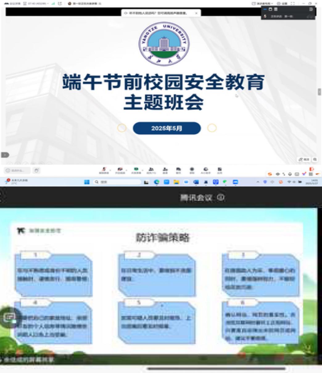 端午佳节将至,为切实增强学生的安全防范意识,确保全体学生度过一个平安、健康、祥和的假期,学院于近日组织开展了2025年端午节假期安全教育主题班会。本次班会采用线上形式,覆盖全体学生,围绕防溺水、防诈骗、交通安全、消防安全等重点领域展开教育,通过案例分析与知识讲解相结合的方式,全面提升学生的安全意识和应急能力。 班会中,各班结合近期发生的真实案例,深入剖析了假期可能存在的各类安全隐患,并详细讲解了预防措施和应对方法。在防溺水教育环节,重点强调了“六不准”原则;在防诈骗方面,提醒学生警惕网络诈骗、兼职陷阱等常见手段;交通安全部分则倡导文明出行,遵守交通规则;消防安全教育则着重讲解了用电安全和火灾逃生技巧。 安全教育是学院常抓不懈的重要工作。未来,学院将继续创新教育形式,通过专题讲座、应急演练等多种方式,进一步筑牢校园安全防线,为学生的健康成长保驾护航,让每一位学子都能在安全的环境中追逐梦想、绽放青春光彩。 (审核:孙恺|编辑:董子敬 史博敏 杨湘虹)