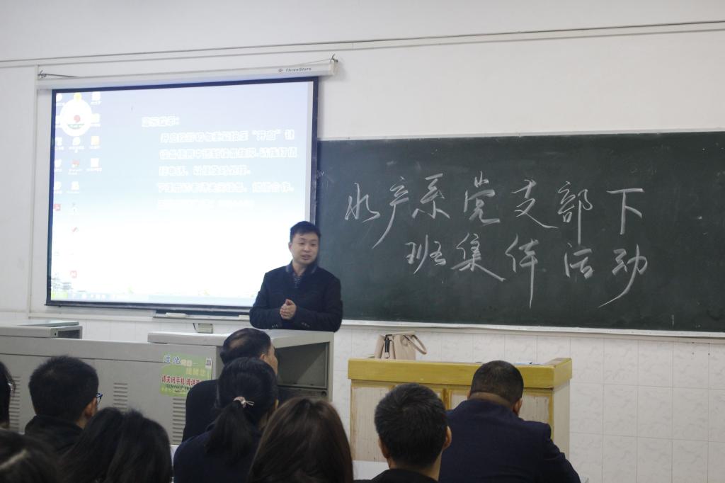 (通讯员 唐钦清)11月15日上午9时许,开云官网水产系教工党支部在西校区5教414教室举行联系班级集体活动,本次活动的目的是党支部通过与水产系全体16级本科生学业、考研及就业等方面的问题等来为学生集体答疑解惑。出席本次活动的人员有动科院党委书记曾庆军,动科院副院长许巧情,水产教工党支部书记易提林,水产系主任袁汉文,专业课老师胡伟、苏应兵等党员老师,2016级水产系全体学生。