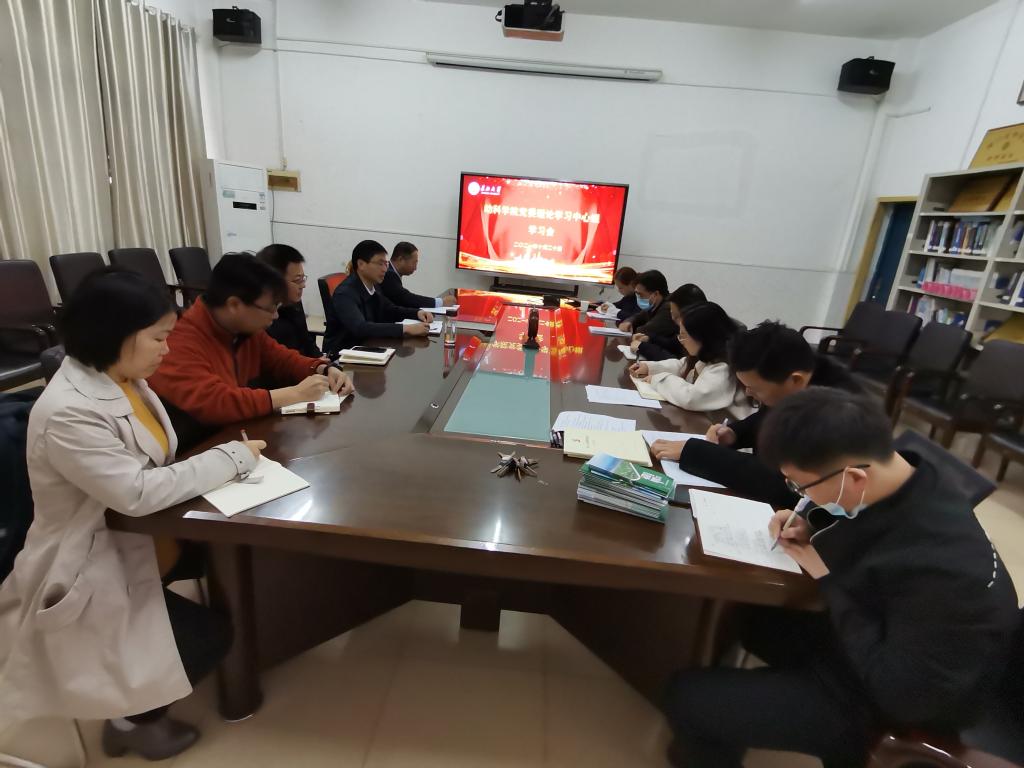 10月20日下午,学院党委理论学习中心组在西校区5教807会议室举行集中学习会,院领导高学军、杨烨、苏晓云、许巧情,党委委员田光明,党支书姚敏、杜晋平、胡伟、王海洋、杨湘虹参加学习,学习会由党委书记熊新山主持。