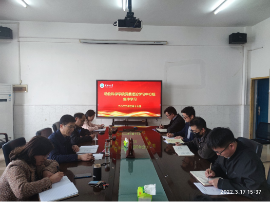 3月17日下午,学院党委理论学习中心组在西校区5教807会议室举行集中学习会,院领导高学军、许巧情、苏晓云、曾庆军,党委委员院长助理田光明,党支书姚敏、杜晋平、胡伟、王海洋、杨湘虹参加学习,学习会由党委书记熊新山主持。