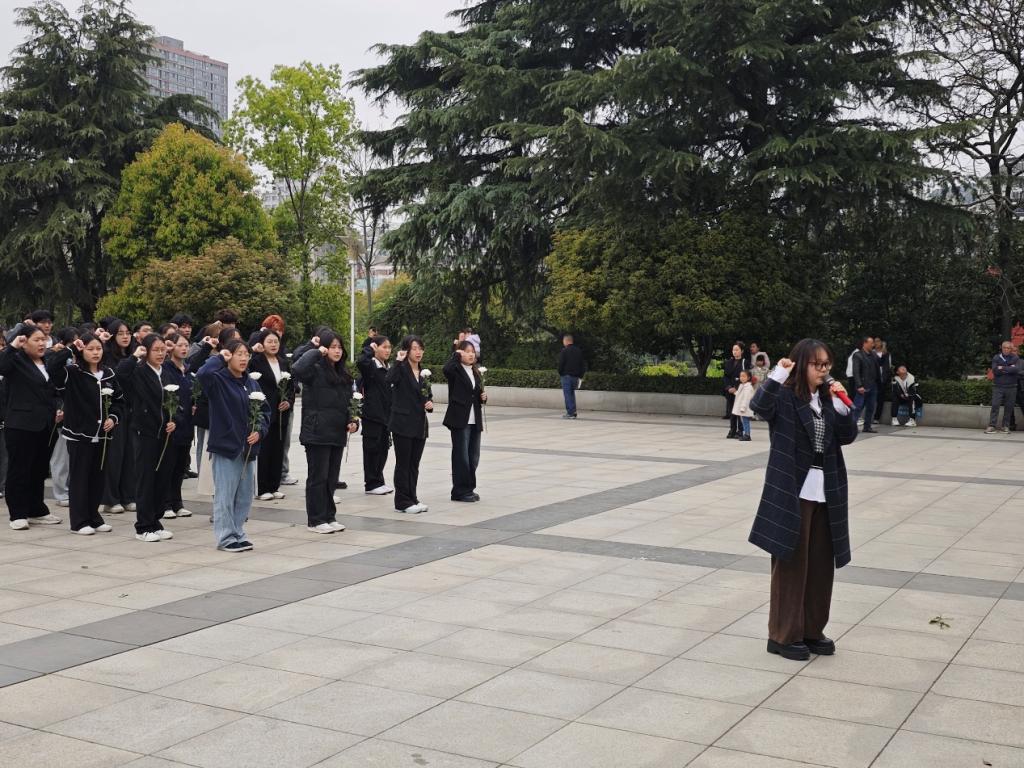 活动伊始,陵园内松柏常青,氛围庄严肃穆。在引导员的带领下,师生们整齐排列于高耸的烈士纪念碑前。激昂的国歌声响起,全体人员齐声高唱,歌声响彻陵园,唱出了对祖国的热爱与对先烈的敬仰。紧接着,大家手持洁白的菊花,低头默哀三分钟,以无声的方式寄托对革命先烈的无限哀思与崇高敬意。在团委老师王婷的引领下,入党积极分子与发展对象们整齐地举起右拳,重温入党誓词。誓言掷地有声,展现出他们深刻领悟先烈精神、传承红色血脉、立志成为新时代党和人民事业生力军的坚定信念。